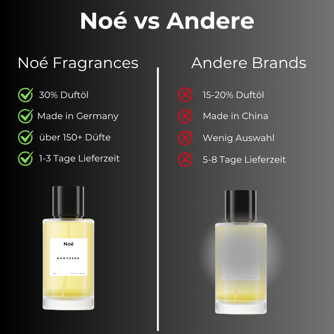 Alle Noé-Düfte enthalten satte 30 % reines Duftöl – damit gehören sie zur höchsten Qualitätsstufe: Extrait de Parfum.